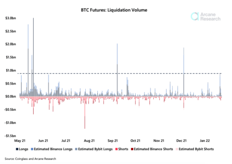 BTC liquidation volumes fall short of expectations | Source: Arcane Research
