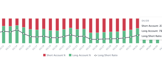 On Binance Futures, the BTCUSDT Long/Short Ratio has continued to surge, hitting a 2.62 ratio on Apr. 9. Roughly 72.4% of all accounts on the world’s largest crypto derivatives exchange by trading volume are net-long on Bitcoin.