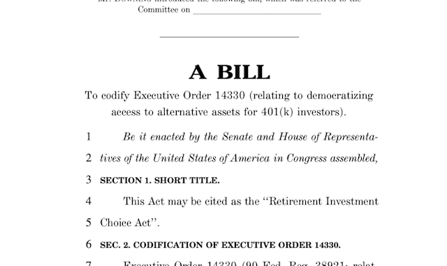 Meanwhile, the Department of Labor has 180 days to propose rule changes enabling plan sponsors to include such assets. However, the ongoing government shutdown could delay progress.
