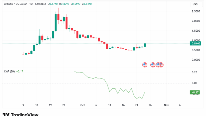 After a steep correction that erased much of its September gains, the Avantis price has staged an impressive rebound, rising 73% over the past week and 31.9% in the last 24 hours.
